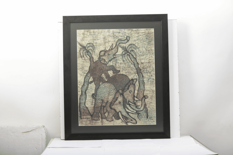 Batik on Rice Paper. Framed and Ready to Hang. Anti-glare Glass. Size - 17" x 20"