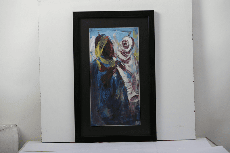 Oil painting on paper. Framed and Ready to Hang. Anti-glare Glass. Size - 10" x 18.5"