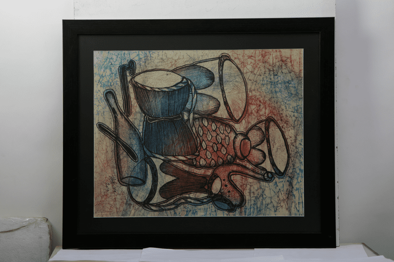Batik on Rice Paper. Framed and Ready to Hang. Anti-glare Glass. Size - 17" x 21"